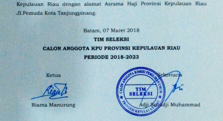 Home/Kepulauan Riau/Pengumuman Tes Tertulis Calon Anggota KPU Provinsi Kepulauan Riau Periode 2018-2023 Kepulauan RiauTanjungpinangPengumuman Tes Tertulis Calon Anggota KPU Provinsi Kepulauan Riau Periode 2018-2023 Cahya Sumirat 7 March 2018 Less than a minute Show More