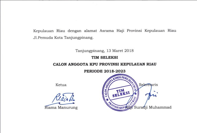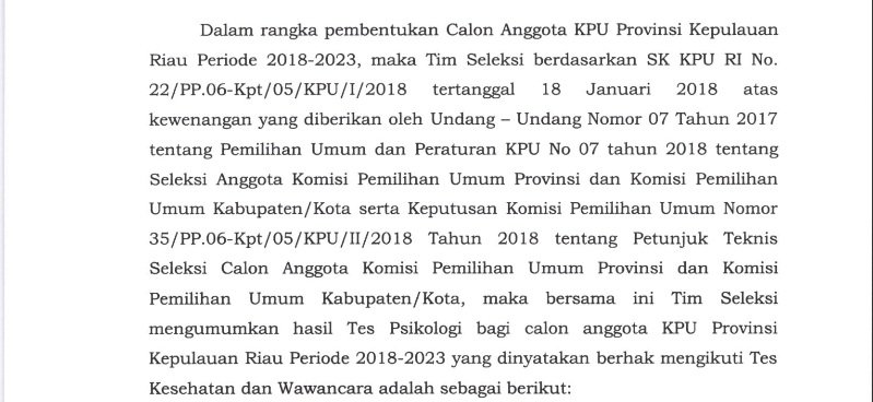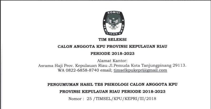 Pengumuman Hasil Tes Psikologi Calon Anggota KPU Kepri Periode 2018-2023