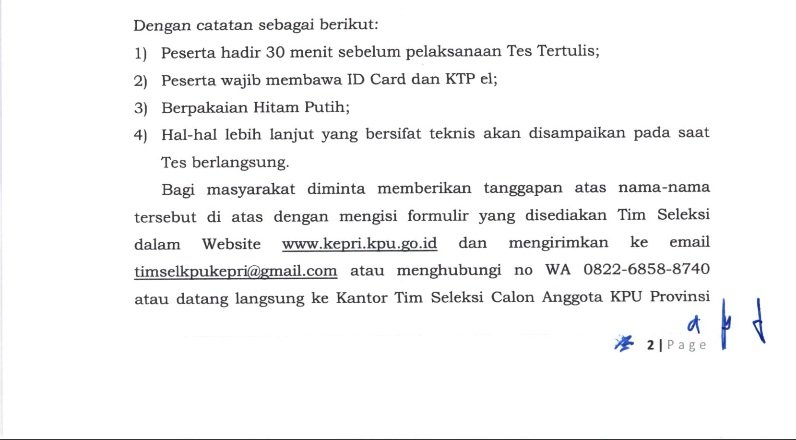4. Hal-hal lebih lanjut yang bersifat teknis akan disampaikan pada saat Tes berlangsung;
