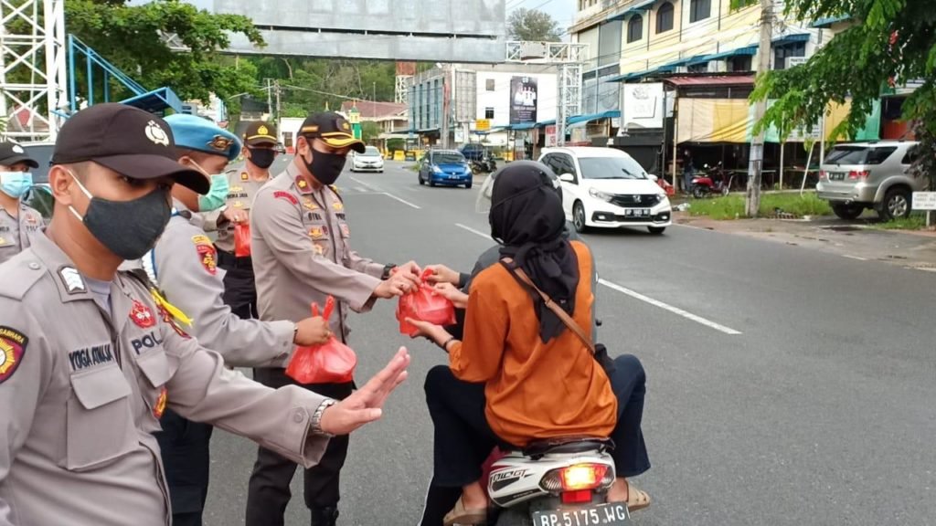 Sebanyak kurang lebih 100 paket takjil dibagikan Wakapolres Tanjungpinang bersama Kapolsek Tanjungpinang Barat AKP Indra Jaya dan Personil Posko.